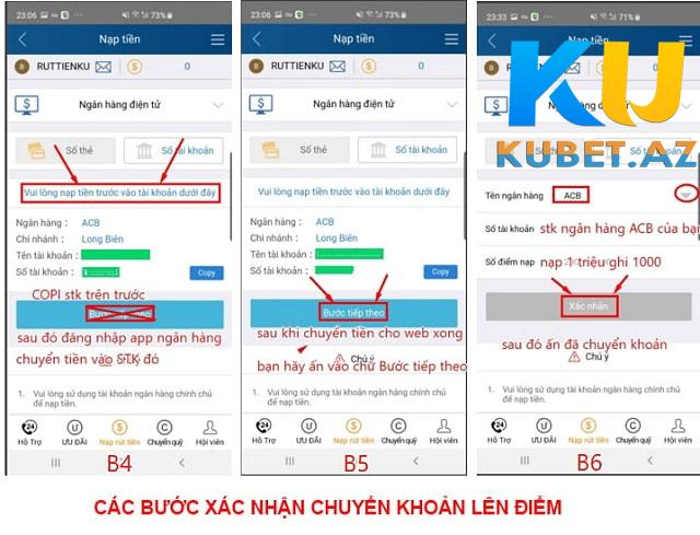 3. Tất cả các giao dịch nạp tiền đều được thực hiện thông qua các ngân hàng tại Việt Nam, giúp người chơi dễ dàng mở tài khoản ngân hàng để thực hiện nạp tiền tại Kubet.