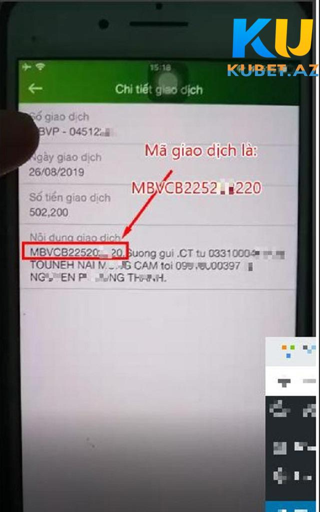 Sau khi giao dịch chuyển khoản thành công, hãy chụp lại hóa đơn giao dịch. Đảm bảo rằng bạn không bỏ qua phần mã giao dịch Vietcombank để xác nhận thanh toán với Kubet.