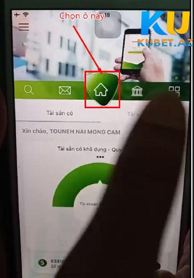 - Nhấn vào biểu tượng giống nhà ở giữa màn hình để truy cập vào tài khoản Vietcombank của bạn.