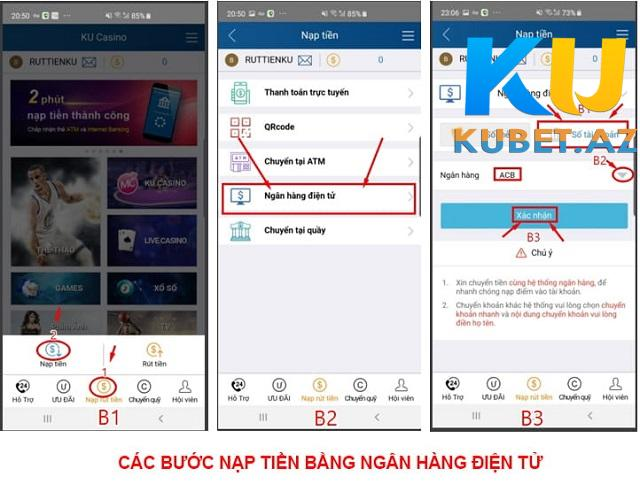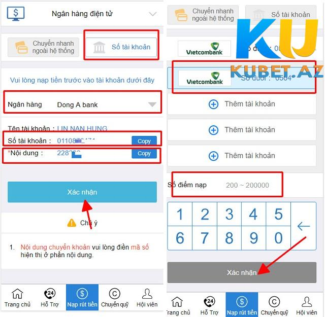 Hướng dẫn nạp tiền vào Kubet bằng tài khoản ngân hàng Vietcombank