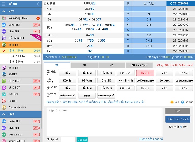 Bước 4: Tiếp theo, bạn chọn hình thức đặt cược và nhập các con số mà bạn muốn đặt cược, sau đó nhập số tiền cược và nhấn đặt cược để hoàn tất.